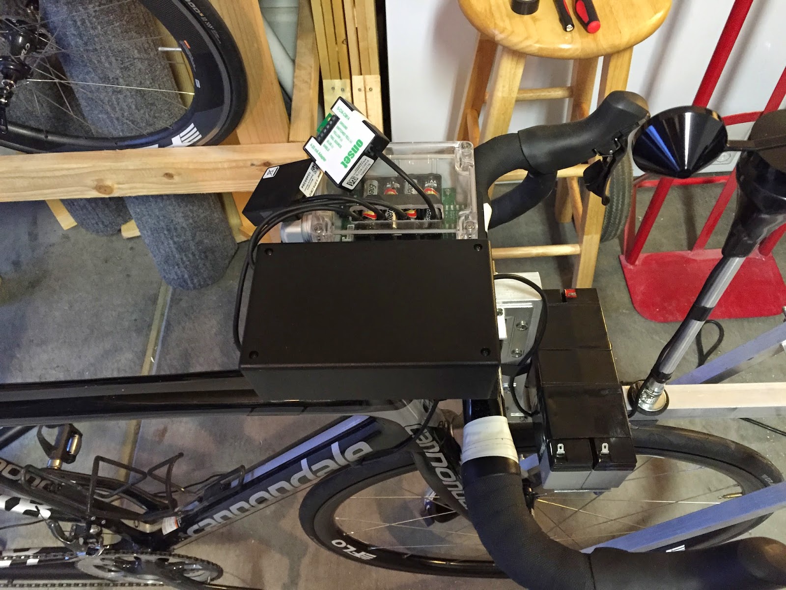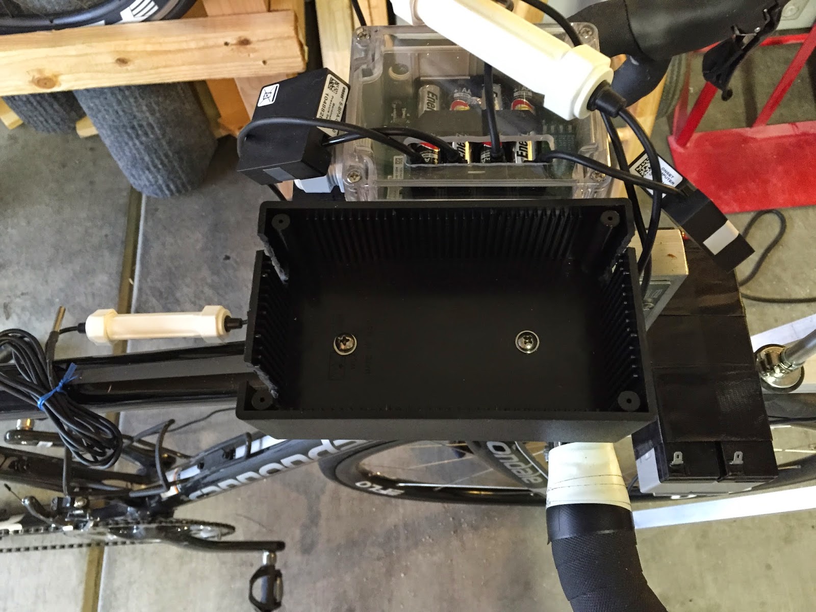 This cleaned up the front of the bike a lot and also gave me a place to enclose the temperature sensor. I wanted to keep it out of the sun to prevent shifts in temperature as I moved in an out of the sunlight.