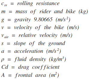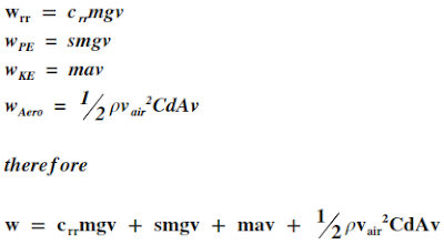 If you do any reading about CdA testing on the road you are bound to hear about the Chung Method.  Robert Chung has done great work in the field and if you are interested I suggest you check out his work.  The method allows you to estimate your CdA by solving for slope.  While I won’t get into all of the details here, it’s been proven to be pretty accurate.  In the Chung Method, Robert discusses how using watts we can solve for CdA.  In order to start we have to break down the forces of the bike and rider.