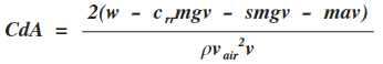 To solve for CdA all we have to do is rearrange the formula.  When we do, we get the following.