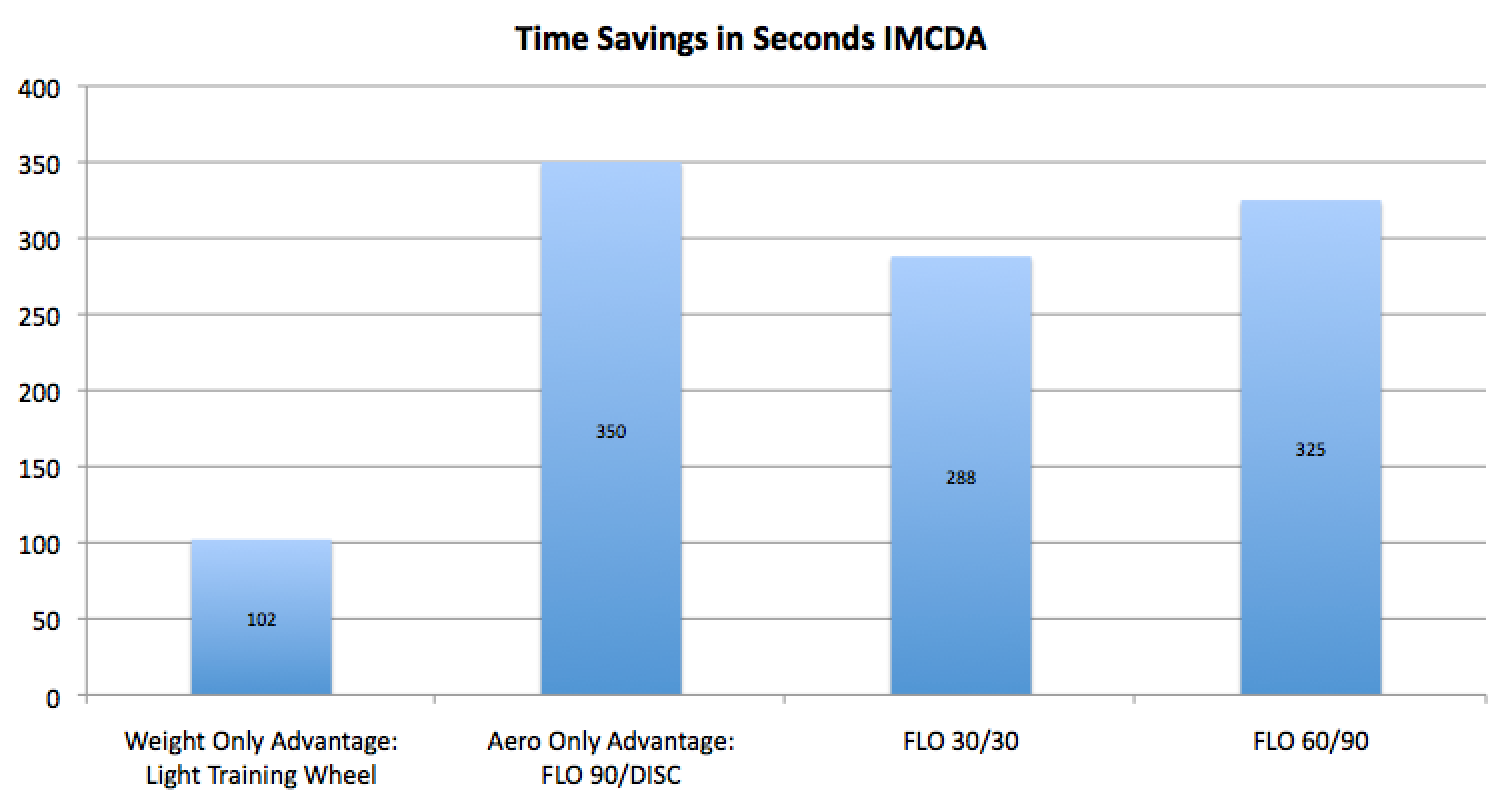 A baseline time has been set for each Ironman course below. The time for the “Heavy” Training wheel to complete the course was used as the baseline time. We then compared all other wheel sets to the baseline to see whether improving aerodynamics or decreasing weight had a bigger influence on the time saved.
