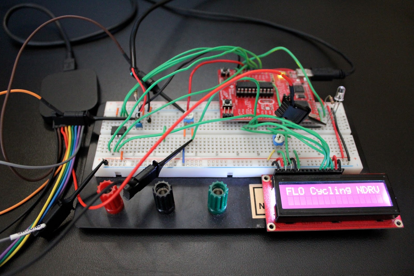 Microcontroller that I developed to read yaw angles, rider speed, and wind speed.