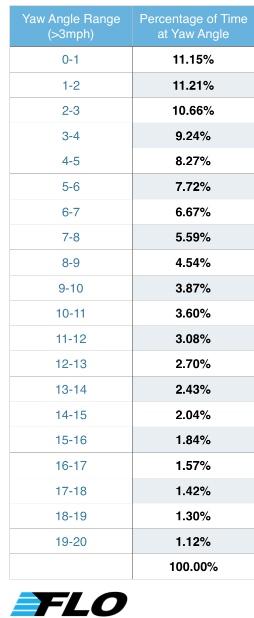 - Our old belief was that 80 percent of your time was spent between 10 and 20 degrees of yaw over an even distribution of time. The new results tell the exact opposite story. In reality, 20 percent of your time is spent between 10 and 20 degrees of yaw, and the time spent at each yaw angle decreases as the yaw angle increases.