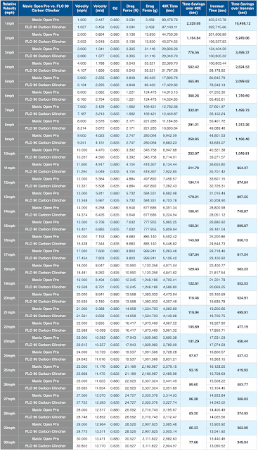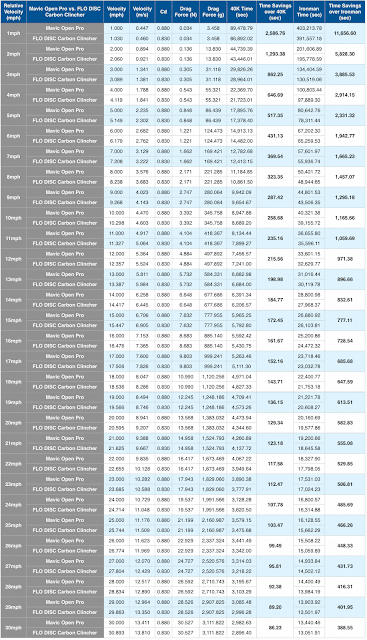 In the original post FLO Cycling – Cycling Wheel Aerodynamics – How Speed, Time, and Power are Affected by Reducing Drag, there is a detailed discussion of the math behind the calculations below. If you are interested please take a look.