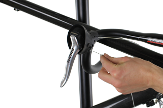 1. Actuate the brake lever and insert the brake cable into the hole at the top of the brake lever (see Figure 1). Note: Inside the brake cable hole at the top of the brake lever is a “cable stop cylinder”. The cable stop cylinder has a “countersunk” side and a “non-countersunk” side. Make sure that the head of the brake cable seats in the countersunk side of the cable stop cylinder.